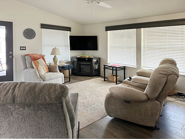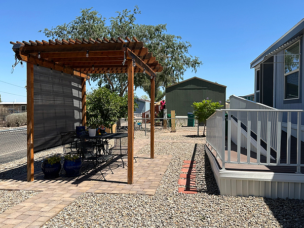 You won't believe this is a Manufactured Home, it looks and feels like a Stick-Built home and is loaded with amenities. Two large, comfortable bedrooms and two bathrooms provide ample space for a couple and guests. The home is in a quiet and relaxing 55+ park, with a convenient pool, a rec room with pool tables, and a busy clubhouse that hosts many activities throughout the year. There's a fully screened-in Arizona room in the front and a screened-in back patio that leads out to a beautiful yard with a gazebo and numerous plants. The garden is irrigated, so the plants there will have access to an adequate water supply during the hotter summer period. There's a large shed in the shade under the awning that provides ample, comfortable storage. The home is in a less-traveled part of the park, making for quiet and serene surroundings. I-10, the main southern east-west interstate, which leads to Phoenix and California westward and New Mexico, Texas, and Florida heading east, is only minutes away. The park is only a mile away from Oracle Rd, one of Tucson's major shopping, entertainment, and dining spots. This home is an opportunity you don't want to miss. As a fall incentive, the seller is offering to prepay the first two months' lot fees for the buyer. . |